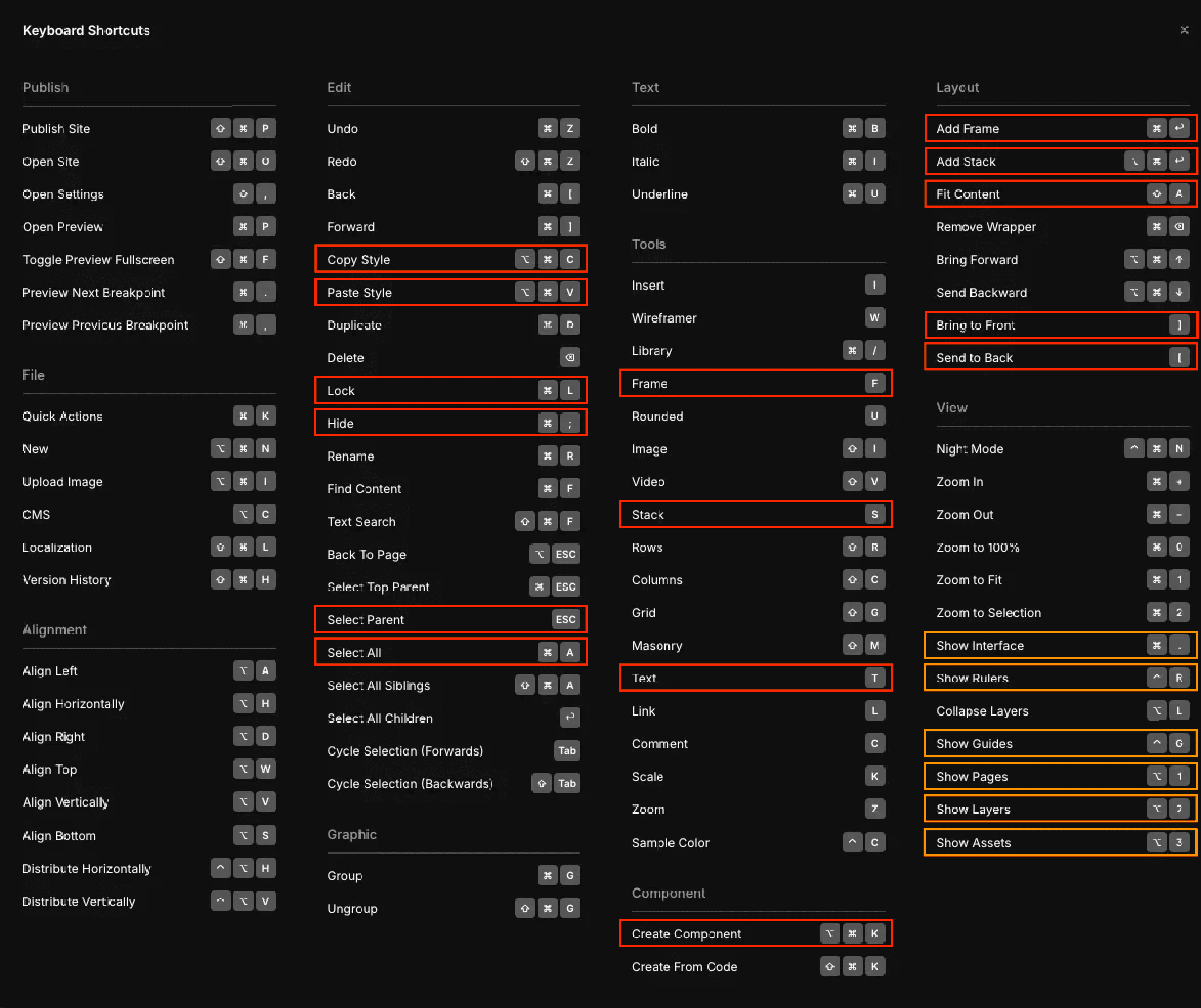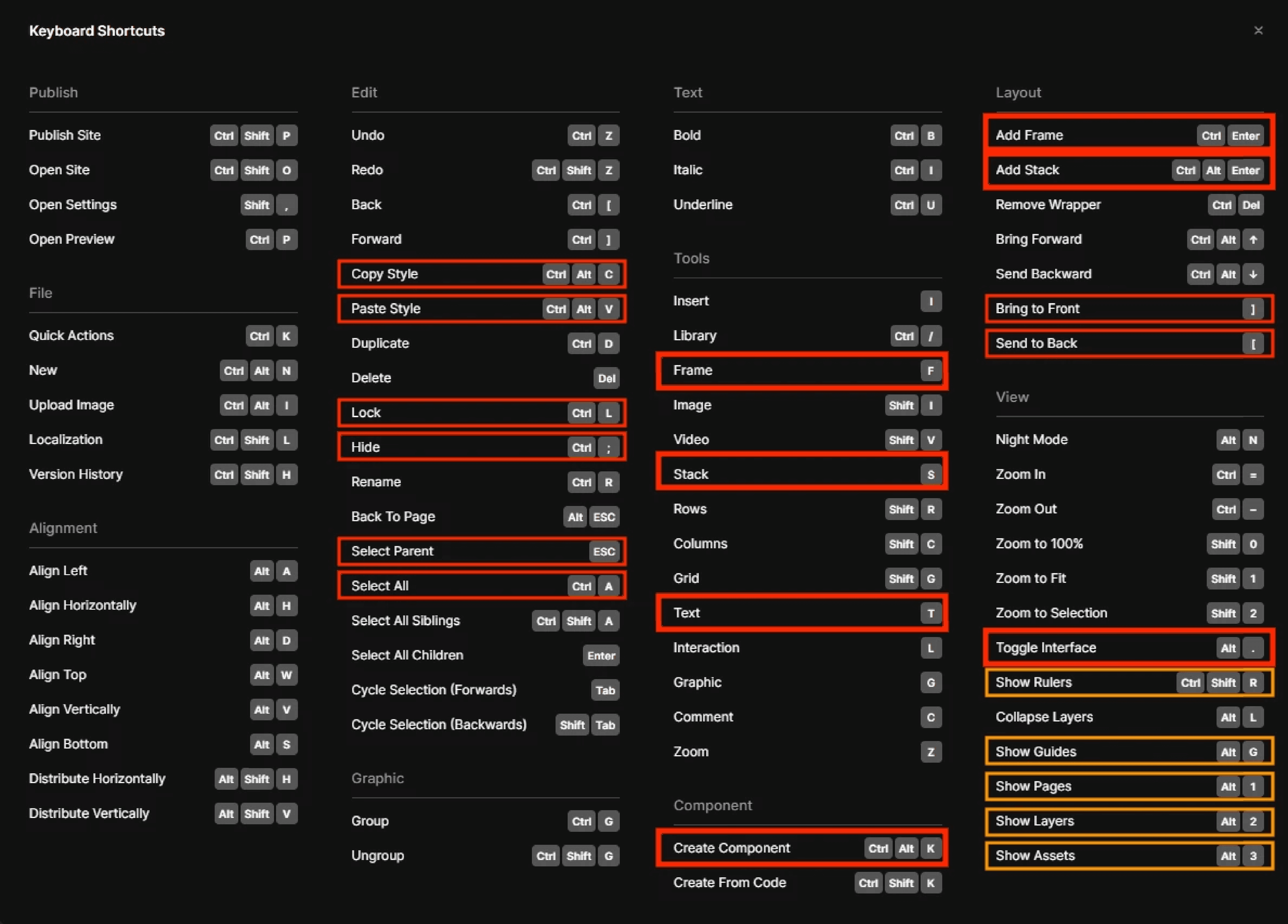 아래는 알아두면 좋은 단축키를 표시해드렸어요. 빨간 표시의 단축키는 자주 사용할 단축키이기 때문에 꼭 기억해 두시면 좋습니다. 주황색 표시의 단축키는 필수는 아니지만 알아두면 좋습니다.