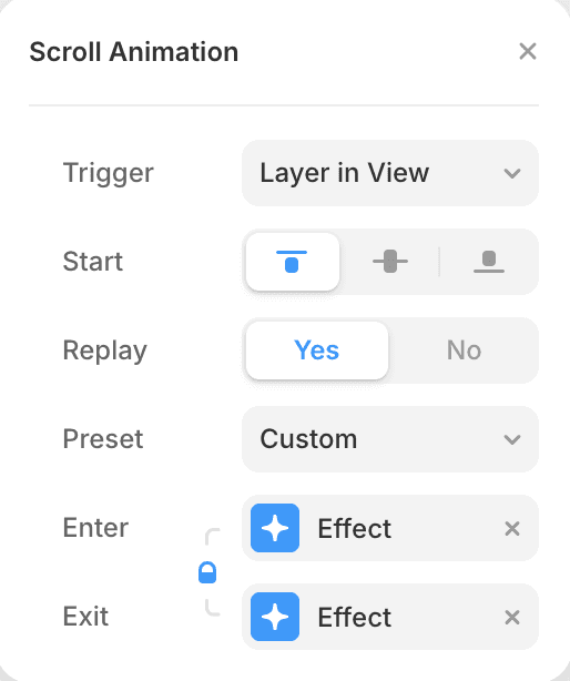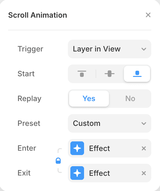 레이어의 중앙이 화면에 보이기 시작하면 애니메이션이 실행됩니다.