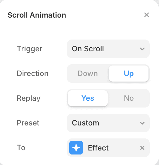 위로 스크롤할 때 이펙트가 실행됩니다.