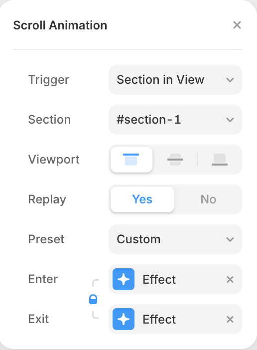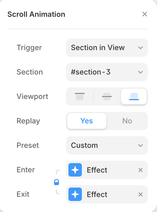 섹션이 화면 상단에 도달하면 애니메이션이 실행됩니다.